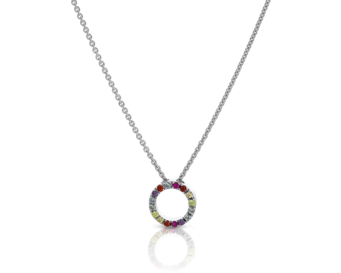 Eine exklusive, filigrane Silberkette aus 925 Sterling Silber mit einem herrlich glänzenden bunten Zirkonia Anhänger.