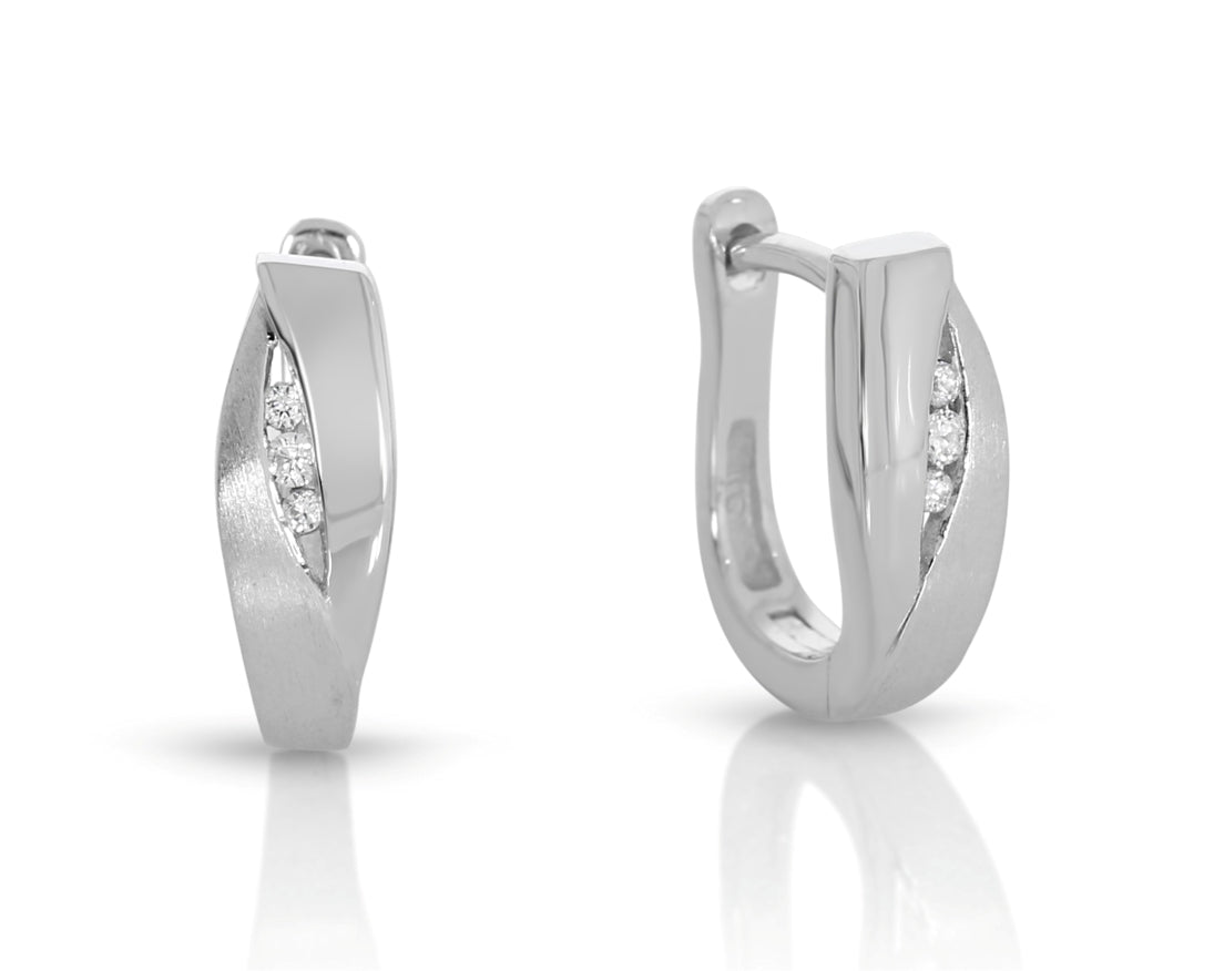Auf der Vorderseite sind die Creolen mit leicht geschwungenen Bahnen gearbeitet, welche durch die eingefasste funkelnde Zirkoniabahn voneinander getrennt wird.