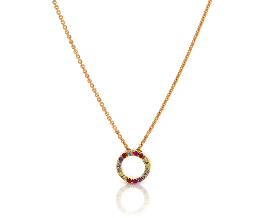 Eine exklusive, filigrane Silberkette aus rosé vergoldete 925 Sterling Silber mit einem herrlich glänzenden bunten Zirkonia Anhänger.